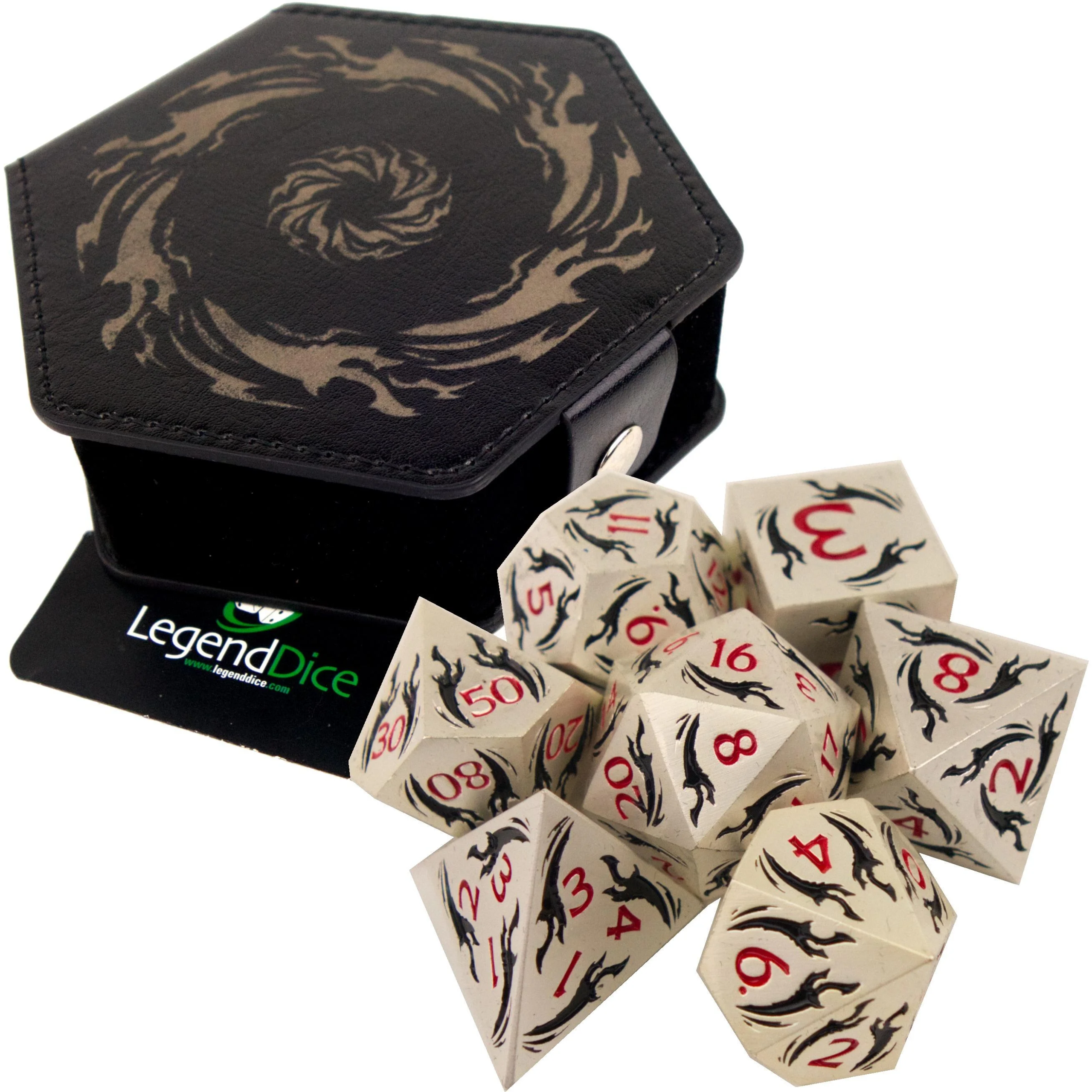 Unleash the power of the dragon with this stunning Metal Dragonfire Silver Black Dice Set. Crafted from high-quality, durable metal, these polyhedral dice feature an arresting silver and black finish with numbers highlighted for clarity, ensuring a satisfying weight and sound with every roll. This premium 7-piece set is essential for any serious player of Dungeons & Dragons, Pathfinder, or other tabletop RPGs who appreciates high-end gaming accessories.