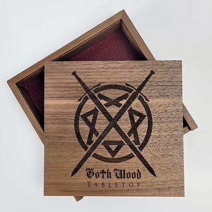The “Ranger” is more than just a tray; it is a versatile toolkit for any Dungeon Master or player. It features a snug, slide-in lid that keeps your dice secure during transit. When you arrive at the table, simply flip the lid over to reveal a precision-engraved 6×6 dungeon room grid—perfect for quick skirmishes or tactical positioning. Inside the main tray, an integrated divider keeps your active dice separated from your spares (or even your snacks). For every “Ranger” tray crafted, Goth Wood plants a tree, making this an eco-conscious choice for your gaming programme. Professionalise your setup with Viking & Swiss.